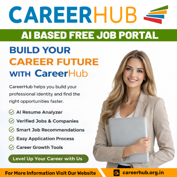 CareerHub is an AI-based free job portal designed to simplify job searching and help individuals build a strong professional future. Whether you are a fresher starting your journey or a working professional aiming for career growth, CareerHub provides smart tools, verified opportunities, and a user-friendly experience to help you move forward with confidence.