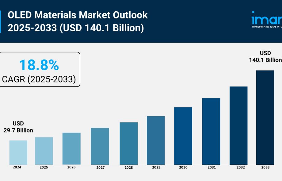 The OLED materials market is experiencing rapid growth, driven by rising demand for high-quality displays, expansion of flexible and foldable devices, and advancements in manufacturing technologies. According to IMARC Group’s latest research publication, “OLED Materials Market: Global Industry Trends, Share, Size, Growth, Opportunity and Forecast 2025-2033”, the global OLED materials market size reached USD 29.7 Billion in 2024. Looking forward, IMARC Group expects the market to reach USD 140.1 Billion by 2033, exhibiting a growth rate (CAGR) of 18.8% during 2025-2033.