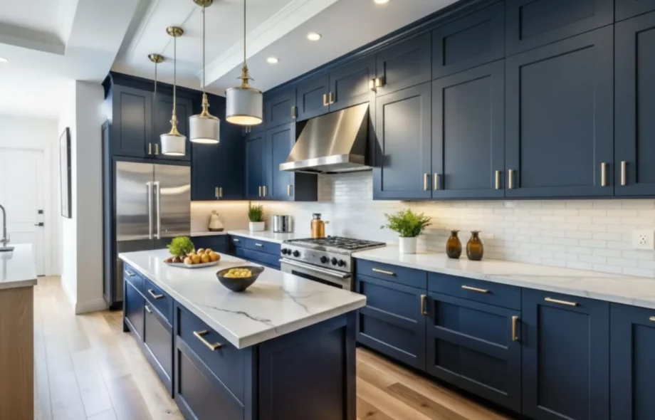 Navy blue paired with white offers a timeless and sophisticated kitchen look. Navy adds depth and richness, while white keeps the space fresh and airy. This combination is ideal for homeowners who want a bold yet classic kitchen that won’t feel outdated over time.